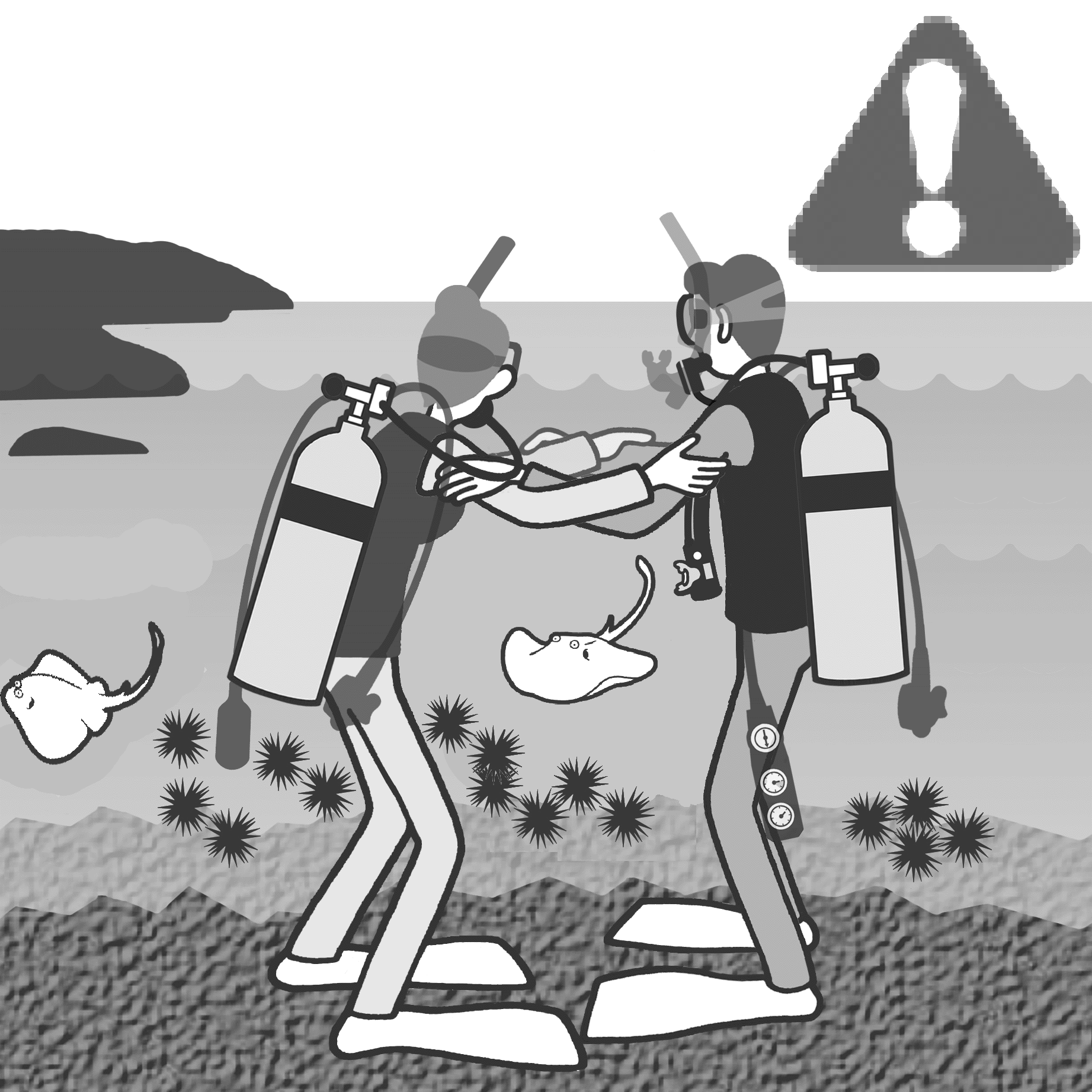 水面のダイバーが手や足をばたつかせていたら、パニックの前兆かもしれません。
