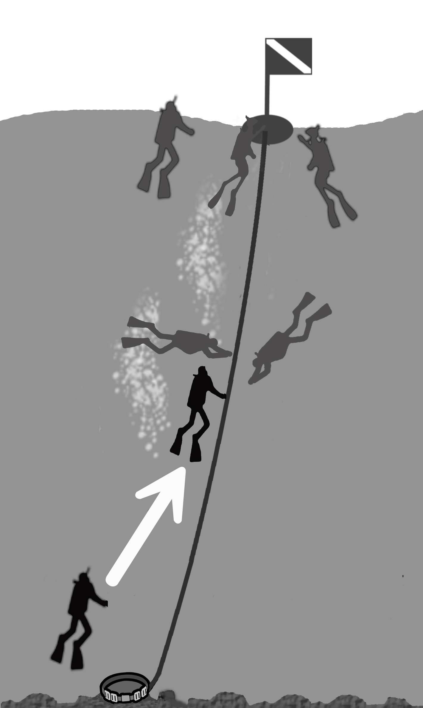 トラブルにすばやく対処できるように、水面フロートと潜降ロープは使用しません。