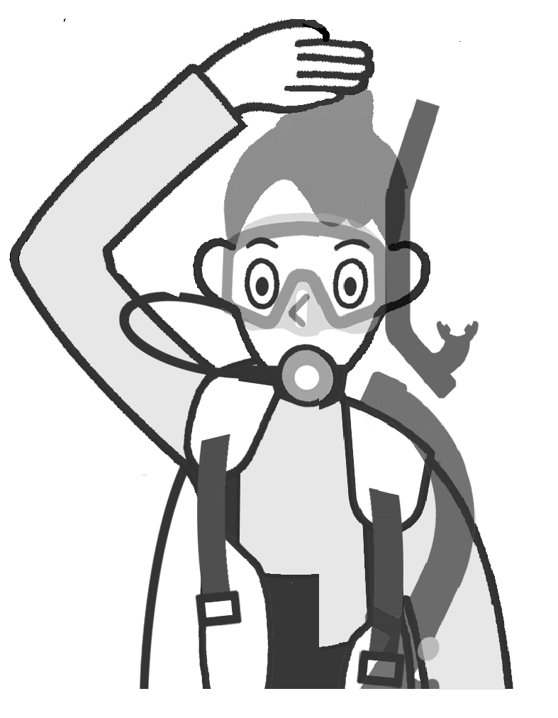 バディ1が到着したら、バディ1とアイコンタクトをとり異常や呼吸の乱れがないかを確認しましょう。