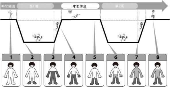 潛水員在水下呼吸的話,氮氣會逐漸被體內所吸收。 結束潛水開始上浮的話,被體內吸收的氮氣會通過呼吸逐漸被排出到體外。