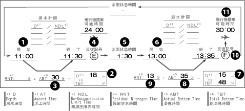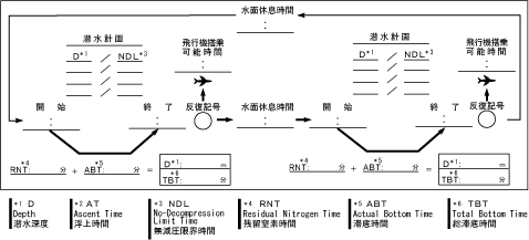 把反復潛水用圖示表示的數據用於寫在下一次的潛水計劃中。 |