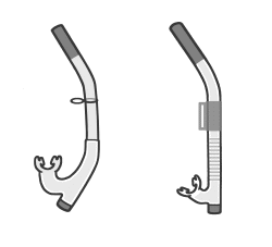 因為持續呼吸的時候沒有必要抬頭,在水肺潛水的水面移動中使用的話,不會消耗體力,或是可以節約氣瓶的空氣。