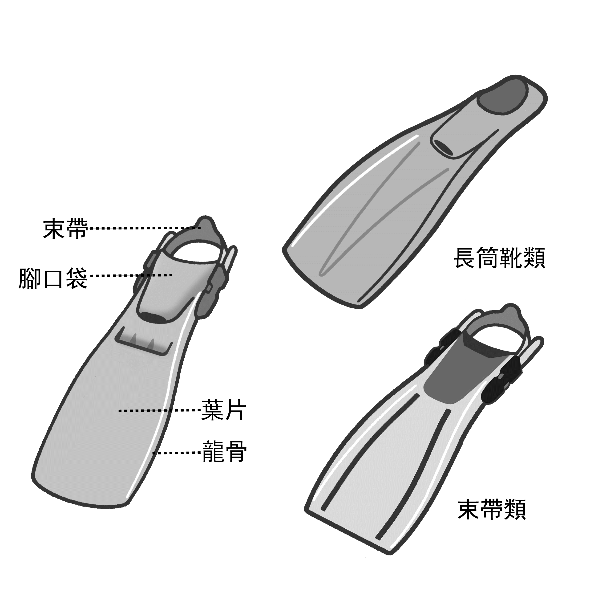 配合腳力和使用水域選擇容易使用的腳蹼吧。