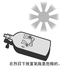 氣瓶在烈日下放置不管的話氣瓶有可能破裂是危險的。