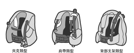 有夾克類型和背部支架類型,夾克類型中有手臂通過的部分帶有可以調節的肩帶的類型。