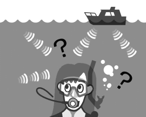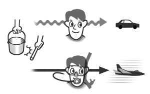 水下的聲音比空氣中的聲音傳達得快(約4倍的速度)。 因為我們是靠聲音到達左右耳的時間差來判斷方向的,所以在時間差短的水下,必須要注意聲音傳來的方向很難辨別。