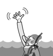 水下不能講話。必要的事情要用手勢傳達。 傳達複雜的內容時,使用水下寫字板。 代表性的手勢必須要記住。 為了讓對方看清,要大且明顯的表示。 另外,進行潛水前,必須要跟全體成員確認一下手勢的意思。
