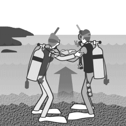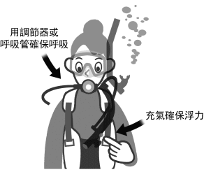 所有的入水時,都要給BC充氣確保浮力。 用調節器或呼吸管確保呼吸。